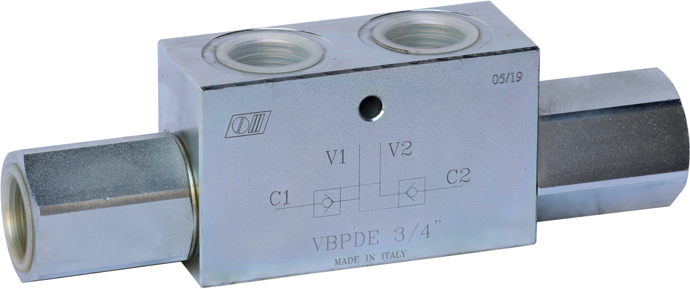 Pilot check valves are used to block the actuator in both directions. Flow is free in one direction and blocked in the reverse direction until pilot pressure is applied. These valves are very safe, that’s why they are ideal to be assembled on crane hydraulic cylinders.