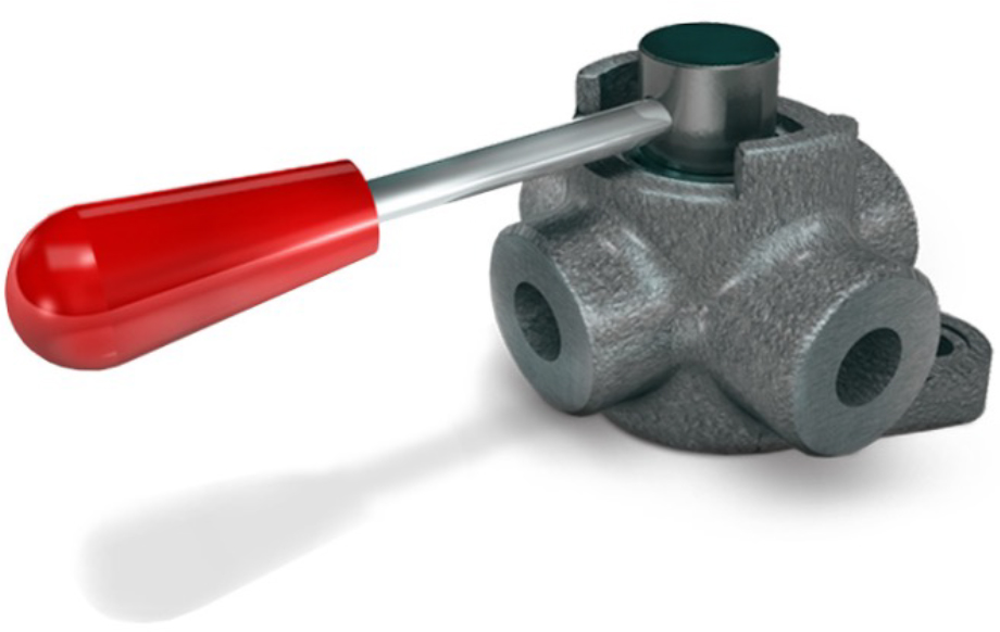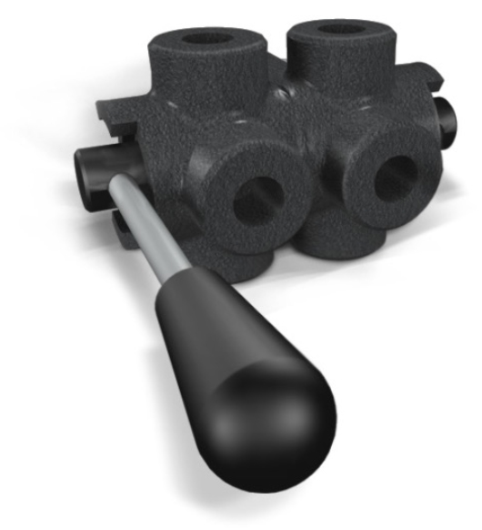 Connect P and P ‘to the two power supplies, ports A and B to the first actuator and ports A’ and B ‘to the second actuator. With lever in pos. 1 P feeds A and P ‘feeds A’, with lever in pos. 2 P feeds B and P ‘feeds B’. With the lever in the central position the mouths of each section are connected to each other (open center).